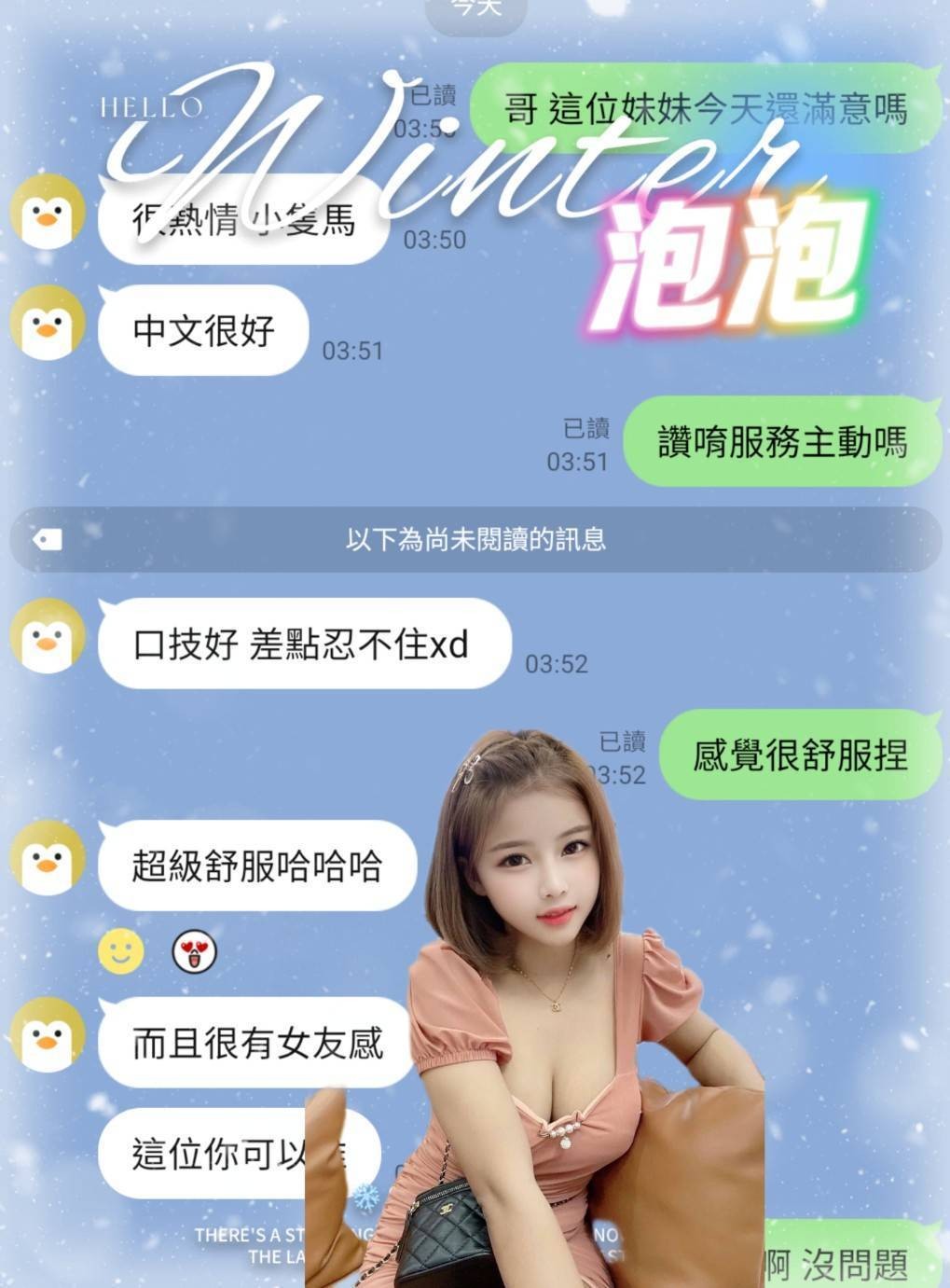 無套吹/奶炮/品鮑/舔蛋/甜蜜共浴/69/水中蕭/深喉嚨/戴套做/小親親/品鮑/甜蜜共浴/按摩/情趣用品(需自備)