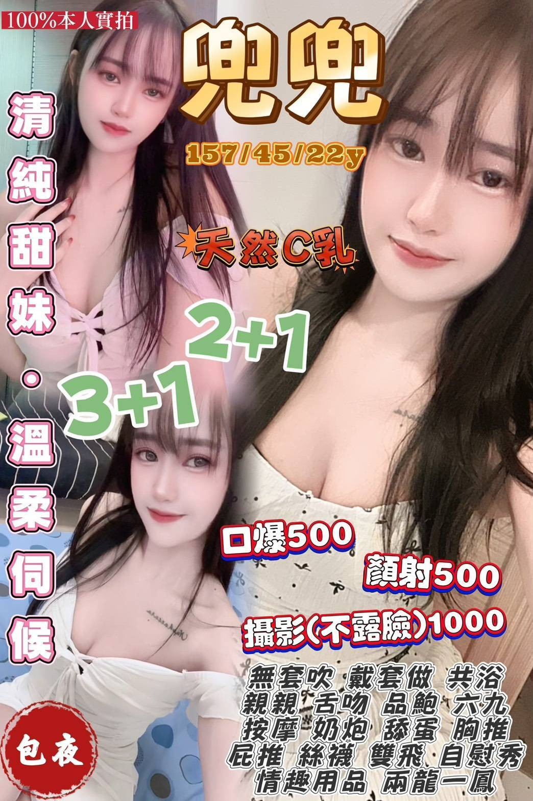 無套吹 戴套做 共浴 親親 舌吻 品鮑 69 按摩 奶炮 舔蛋 胸推 屁推 絲襪 雙飛 自慰秀 情趣用品 兩龍一鳳