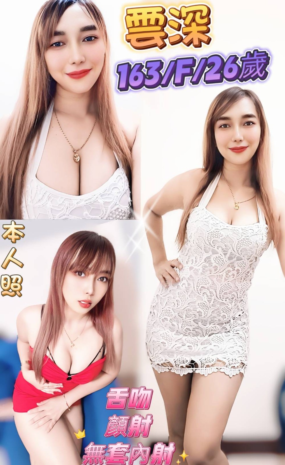 無套吹/戴套做/前後澡/品鮑/69/舔蛋/奶炮/胸推/屁推/按摩/親嘴(視現場感覺而定)