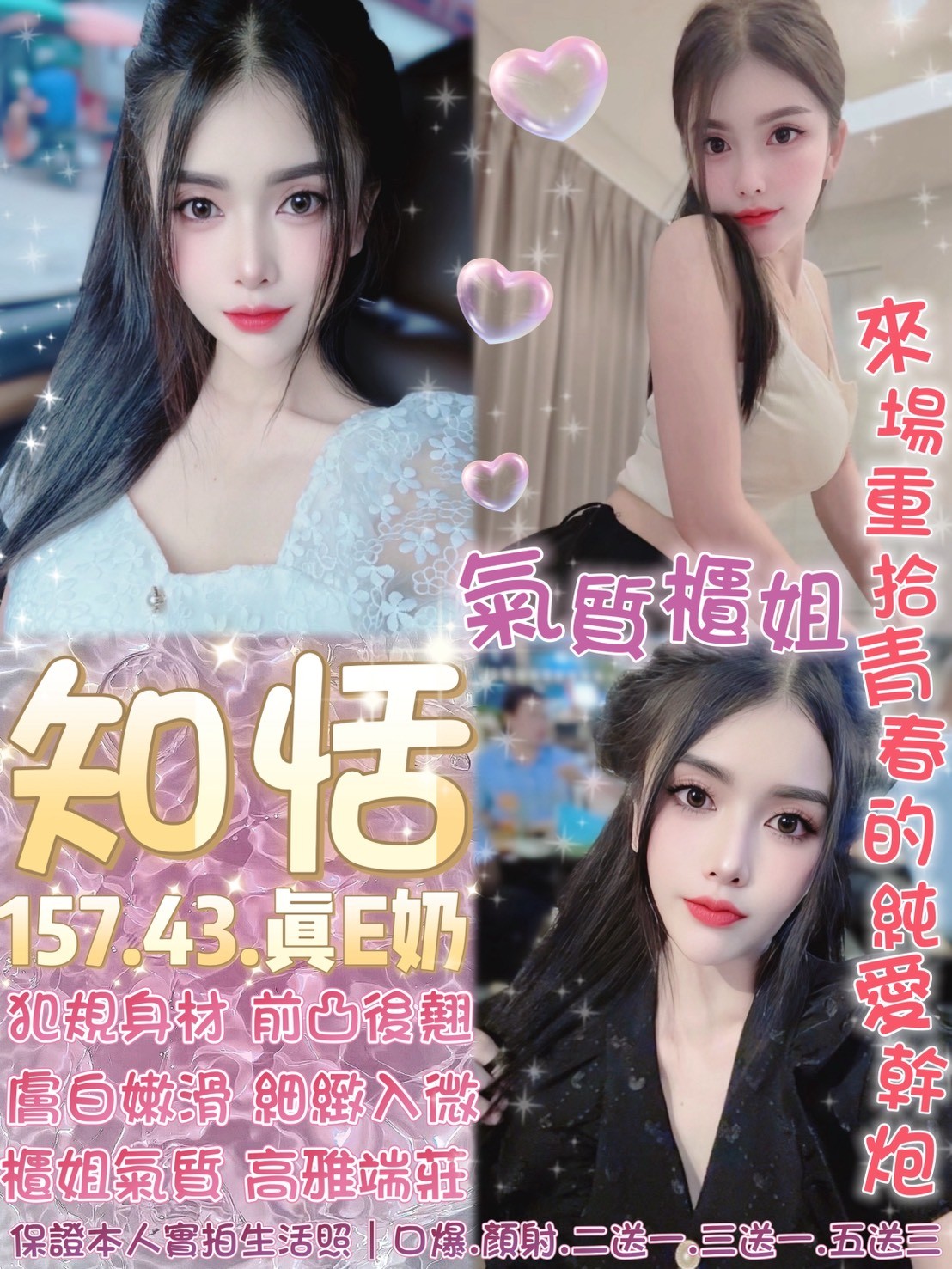 無套吹 共浴 小親親 舌吻視感覺 品鮑 69 胸磨臉 按摩 奶炮 雙飛 情趣用品(客自備 胸推 屁推 絲襪(客自備 自慰秀
